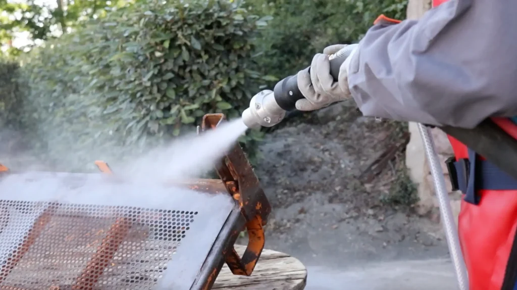 L’hydrogommage combine la projection d’eau et d’abrasif à basse pression. Cette technique humide est particulièrement efficace pour nettoyer sans agresser les surfaces, tout en limitant la dispersion de poussière.9+